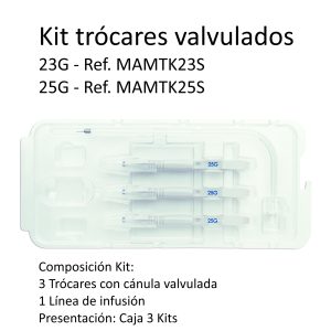 Kit de trocares valvulados 25G desechable, 1 paso