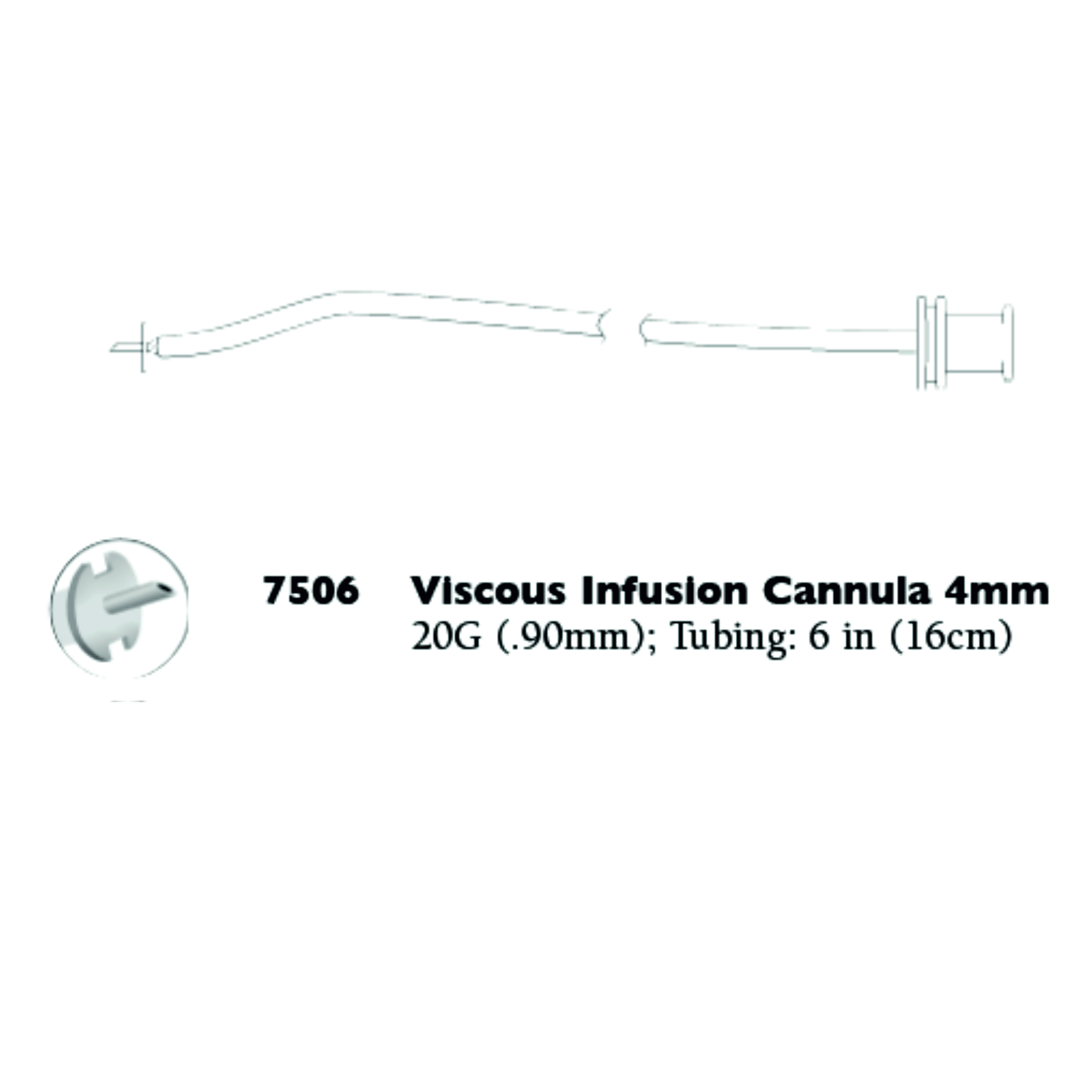 Cánula recta de 20G de tamaño corto con punta biselada y conectada a un tubo flexible, especial para alta presión, con conector universal. De un solo uso