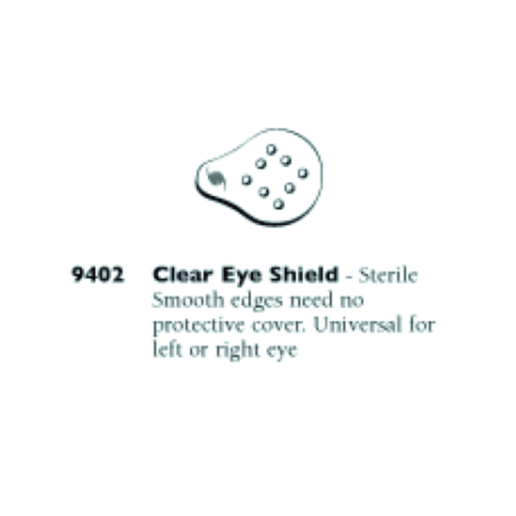 Pieza circular de protección ocular con orificios de ventilación. Tamaño universal, para ojo derecho e izquierdo. Bordes púlidos muy suaves. Estéril. De un solo uso.