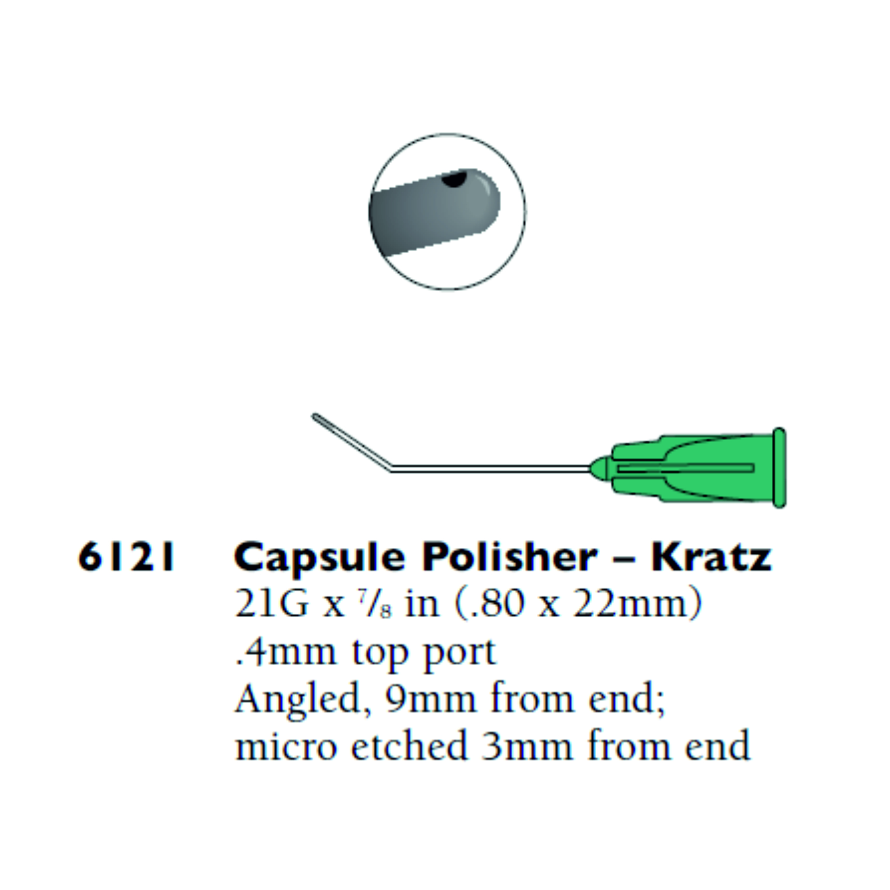 Para el pulido y la limpieza del saco capsular eliminando los residuos corticales de manera suave y atraumática. El tratamiento rugoso de la punta facilita el pulido de la cápsula.